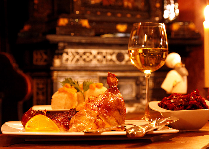 Die Gäste können in der aufgehellten, aber in ihren Grundzügen erhalten gebliebenen, lieb gewonnenen Einrichtung der früheren Kultkneipe mit „Happas“ starten: klassisch deutsche Gerichte in Tapasgröße als Vorspeisen, liebevoll und äußerst schmackhaft zubereitet (z. B. Heringstatar auf Kartoffelrösti oder Labskaus, je 6,50 Euro, badische Schnecken auf Gemüse 9 Euro). Kostspieliger wird’s in der Rubrik „Heftig Hungar“, also für den großen Hunger: 16 Euro (Medaillons vom Schweinefilet) bis 32 Euro (Entrecote Double „für den ganzen Kerl“, 400 Gramm mit Pommes und Salat) sind für die Hauptgerichte fällig, was aber angesichts der Qualität eine faire Preisspanne ist. „Muttis Rinderroulade“ mit hausgemachtem Rotkohl und Kartoffelpüree ist schön mürbe und kann (abgesehen vom etwas faden Gemüse) durchaus mit dem mütterlichen Qualitätsstandard konkurrieren. Und das Wiener Schnitzel (das Original vom Kalb) mit köstlichen Bratkartoffeln bekommt man bei den einschlägigen Österreichern der Stadt tatsächlich auch nicht sehr viel besser.